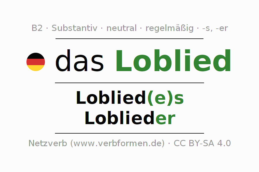 - Plural: die Loblieder, der Loblieder, den Lobliedern, die Loblieder