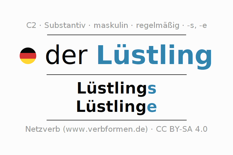 - Singular: der Lüstling, des Lüstlings, dem Lüstling, den Lüstling