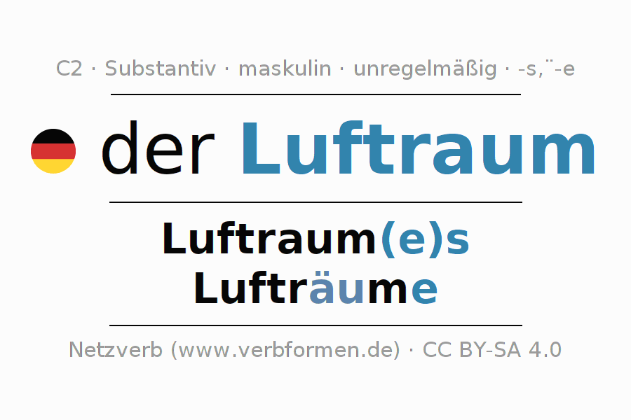 - Plural: die Lufträume, der Lufträume, den Lufträumen, die Lufträume