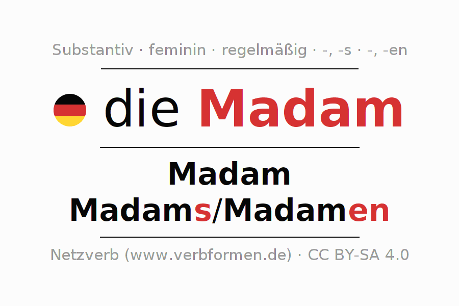 - Singular: die Madam, der Madam, der Madam, die Madam