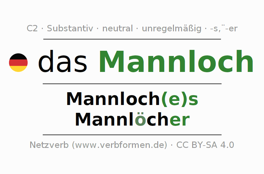 Deklination von Mannloch im Singular und Plural in allen Kasus
