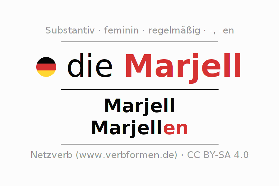 - Plural: die Marjellen, der Marjellen, den Marjellen, die Marjellen