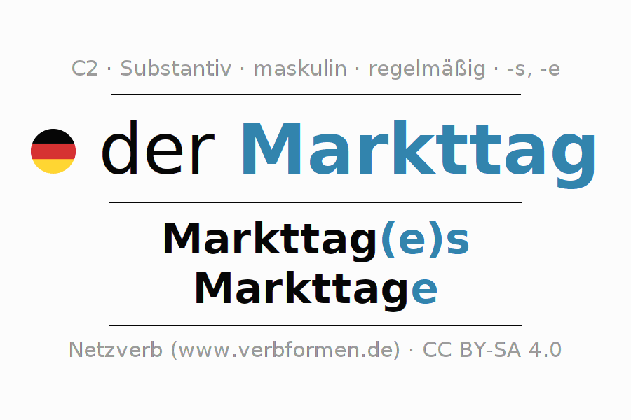 - Singular: der Markttag, des Markttag(e)s, dem Markttag(e), den Markttag