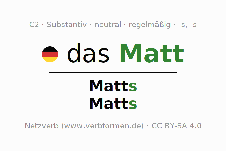 - Singular: das Matt, des Matts, dem Matt, das Matt