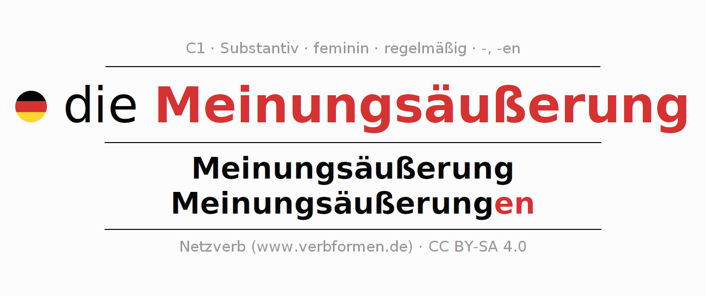 - Singular: die Meinungsäußerung, der Meinungsäußerung, der Meinungsäußerung, die Meinungsäußerung