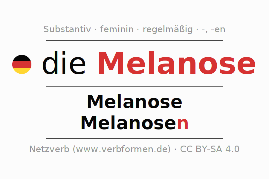 - Singular: die Melanose, der Melanose, der Melanose, die Melanose