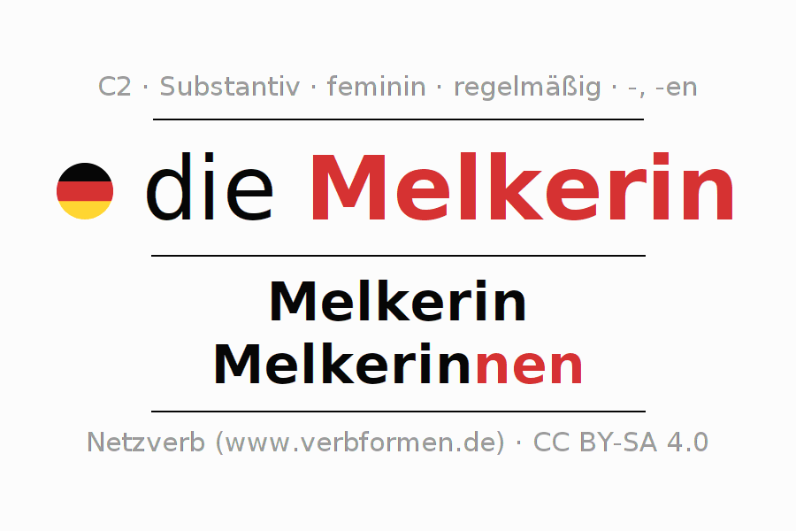 - Singular: die Melkerin, der Melkerin, der Melkerin, die Melkerin