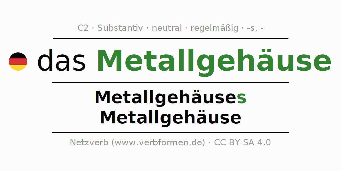 - Singular: das Metallgehäuse, des Metallgehäuses, dem Metallgehäuse, das Metallgehäuse