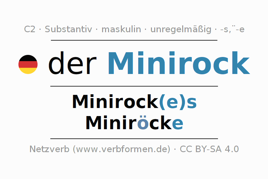 - Singular: der Minirock, des Minirock(e)s, dem Minirock(e), den Minirock