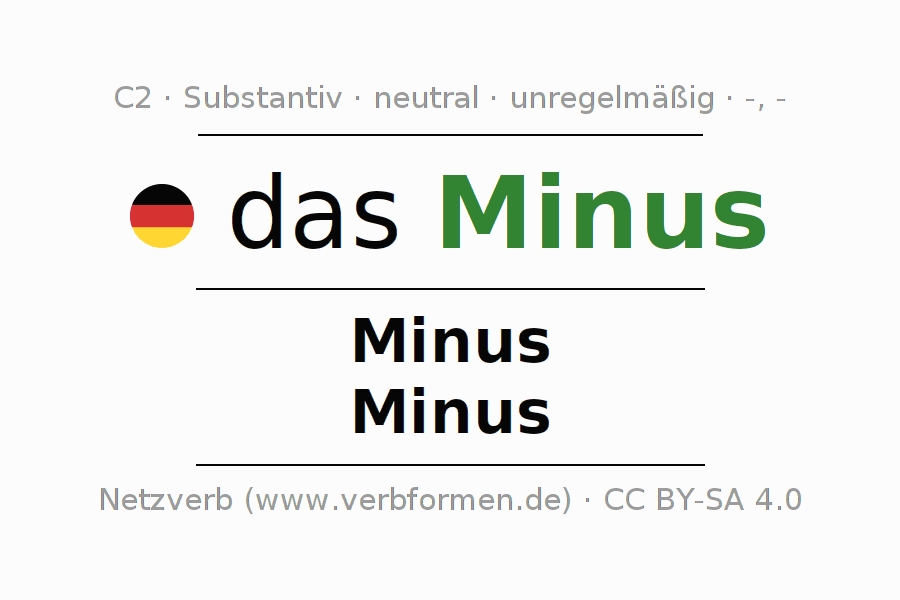 - Singular: das Minus, des Minus, dem Minus, das Minus