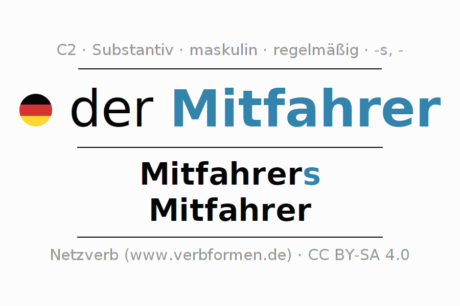 - Singular: der Mitfahrer, des Mitfahrers, dem Mitfahrer, den Mitfahrer
