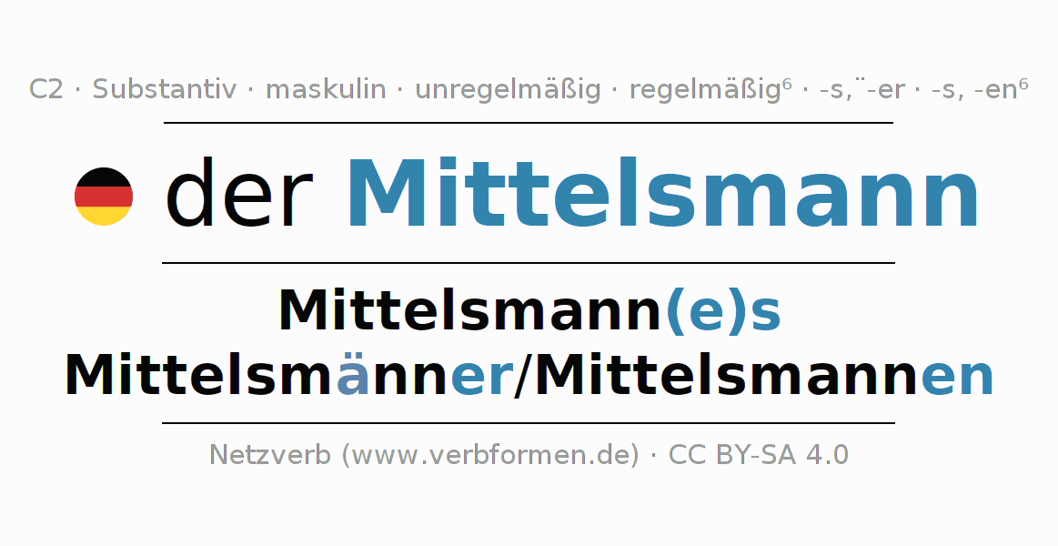 | Nom. | der Mittelsmann | die Mittelsmänner/Mittelsmannen |