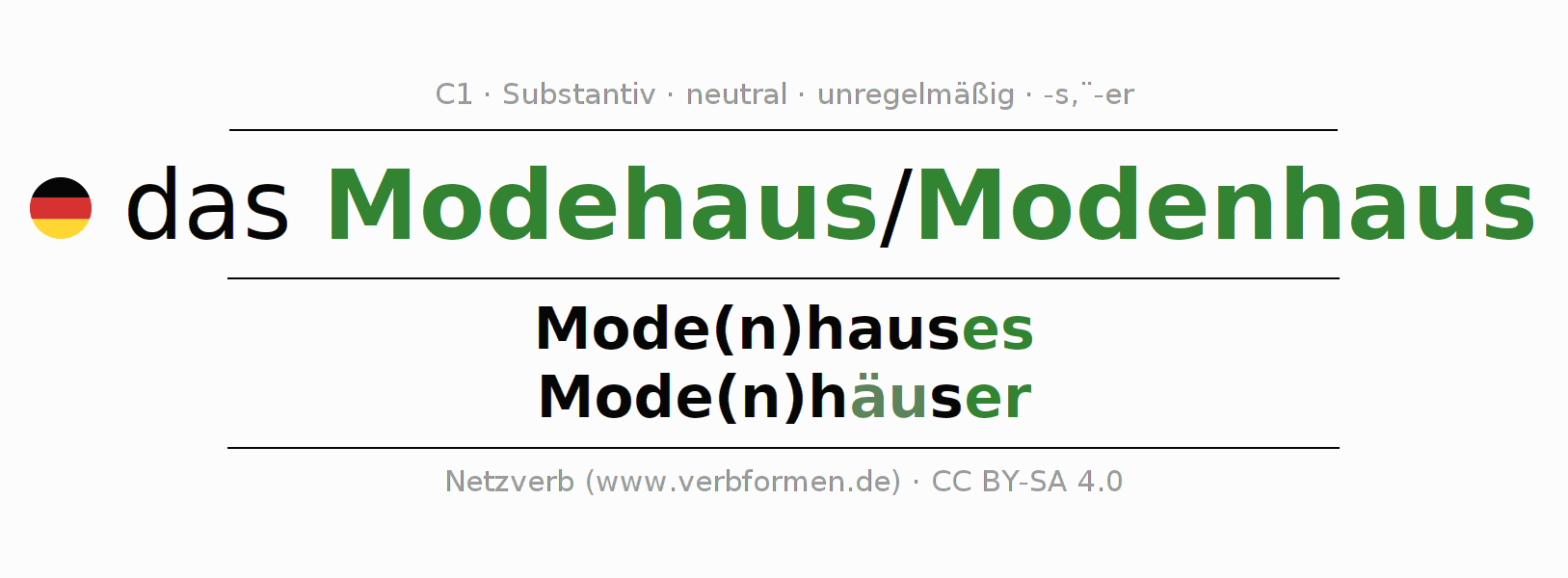 | Nom. | das Mode(n)haus | die Mode(n)häuser |