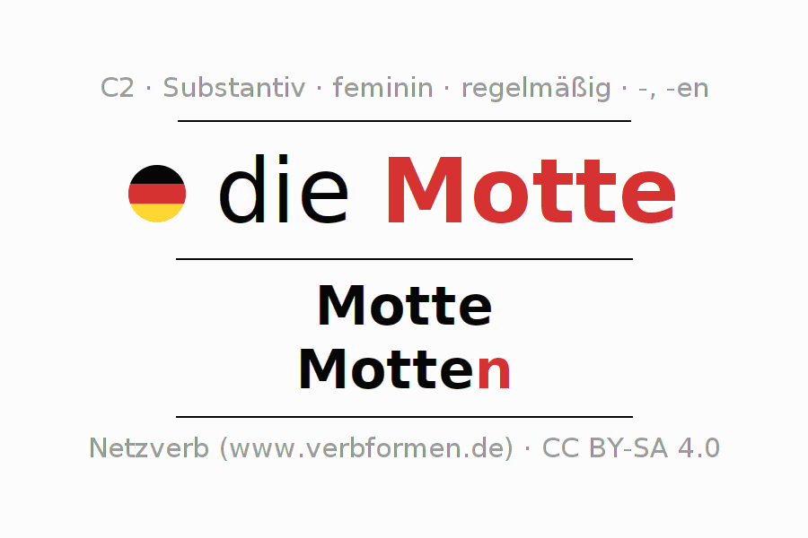 - Plural: die Motten, der Motten, den Motten, die Motten