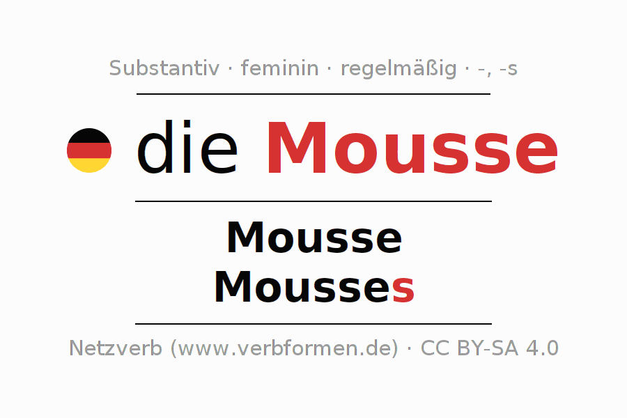 - Singular: die Mousse, der Mousse, der Mousse, die Mousse