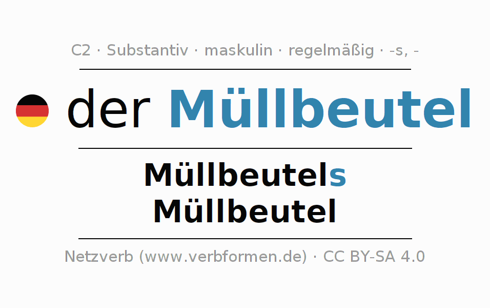 - Singular: der Müllbeutel, des Müllbeutels, dem Müllbeutel, den Müllbeutel