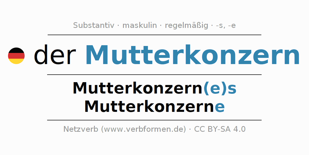 - Singular: der Mutterkonzern, des Mutterkonzern(e)s, dem Mutterkonzern(e), den Mutterkonzern