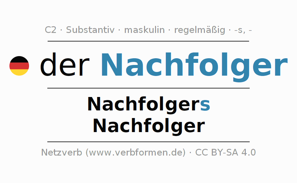 - Singular: der Nachfolger, des Nachfolgers, dem Nachfolger, den Nachfolger