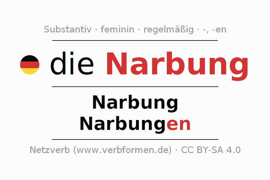 - Singular: die Narbung, der Narbung, der Narbung, die Narbung
