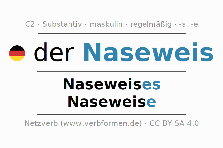 - Singular: der Naseweis, des Naseweises, dem Naseweis(e), den Naseweis