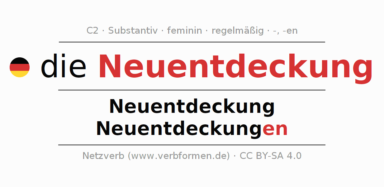 - Singular: die Neuentdeckung, der Neuentdeckung, der Neuentdeckung, die Neuentdeckung