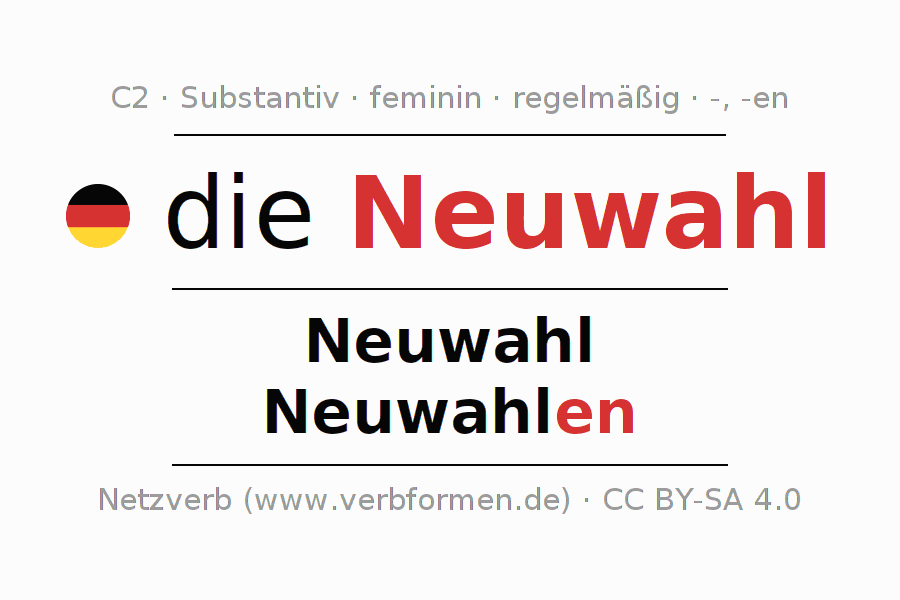 - Singular: die Neuwahl, der Neuwahl, der Neuwahl, die Neuwahl