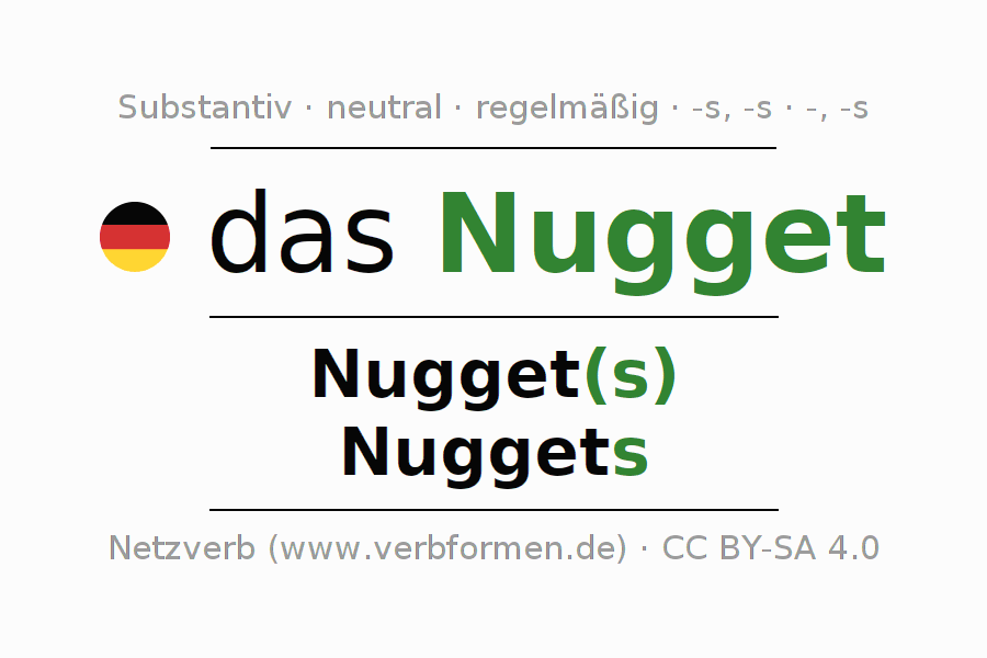 - Plural: die Nuggets, der Nuggets, den Nuggets, die Nuggets