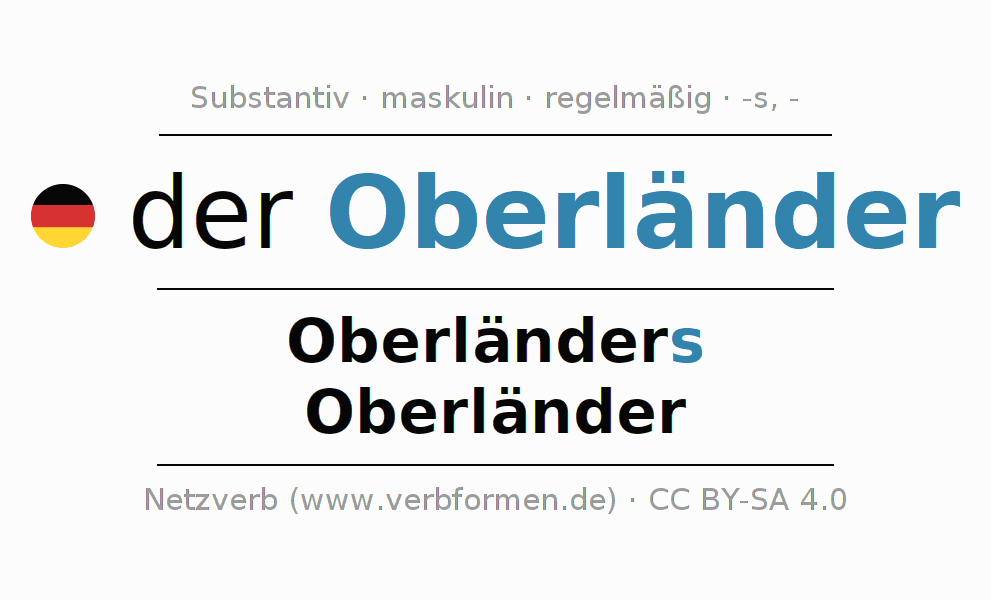 - Singular: der Oberländer, des Oberländers, dem Oberländer, den Oberländer