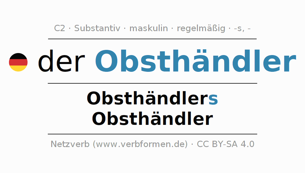 - Singular: der Obsthändler, des Obsthändlers, dem Obsthändler, den Obsthändler