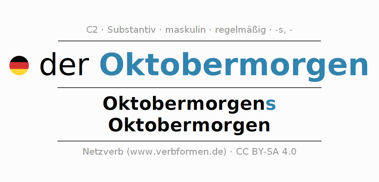 - Singular: der Oktobermorgen, des Oktobermorgens, dem Oktobermorgen, den Oktobermorgen