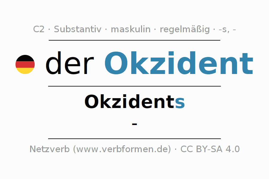 - Singular: der Okzident, des Okzidents, dem Okzident, den Okzident