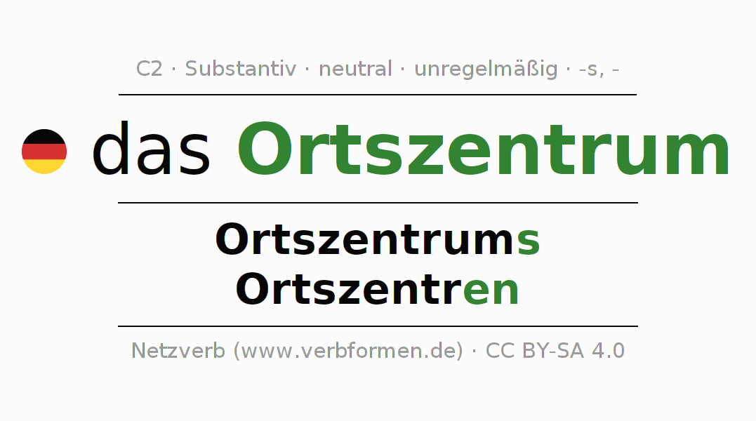 - Singular: das Ortszentrum, des Ortszentrums, dem Ortszentrum, das Ortszentrum