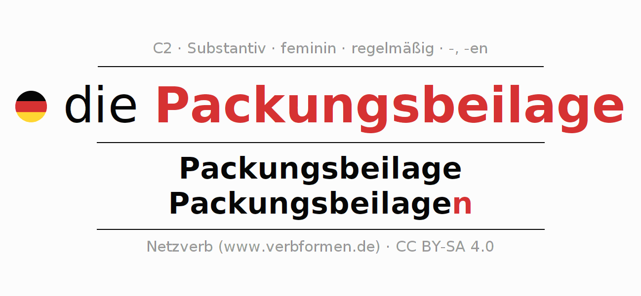- Singular: die Packungsbeilage, der Packungsbeilage, der Packungsbeilage, die Packungsbeilage