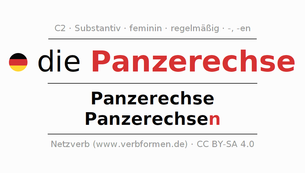 - Singular: die Panzerechse, der Panzerechse, der Panzerechse, die Panzerechse