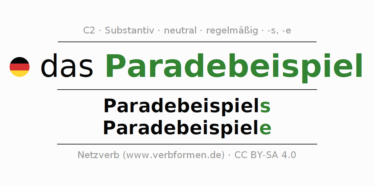 | Nom. | das Paradebeispiel | die Paradebeispiele |