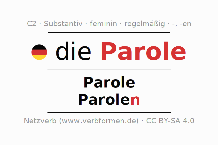 - Singular: die Parole, der Parole, der Parole, die Parole