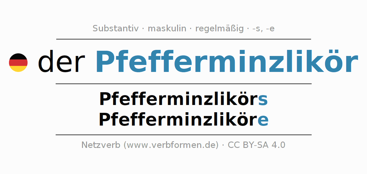 | Akk. | den Pfefferminzlikör | die Pfefferminzliköre |