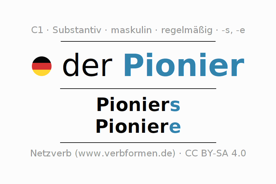 - Plural: die Pioniere, der Pioniere, den Pionieren, die Pioniere