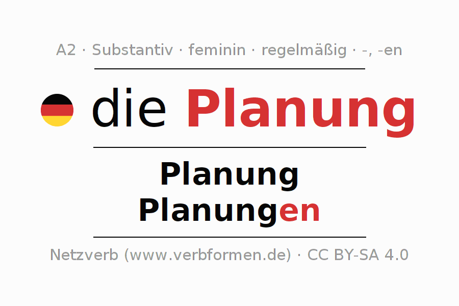 - Plural: die Planungen, der Planungen, den Planungen, die Planungen