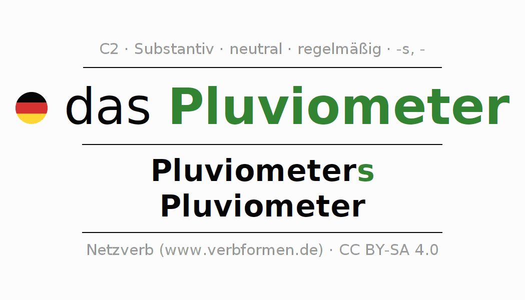 - Plural: die Pluviometer, der Pluviometer, den Pluviometern, die Pluviometer