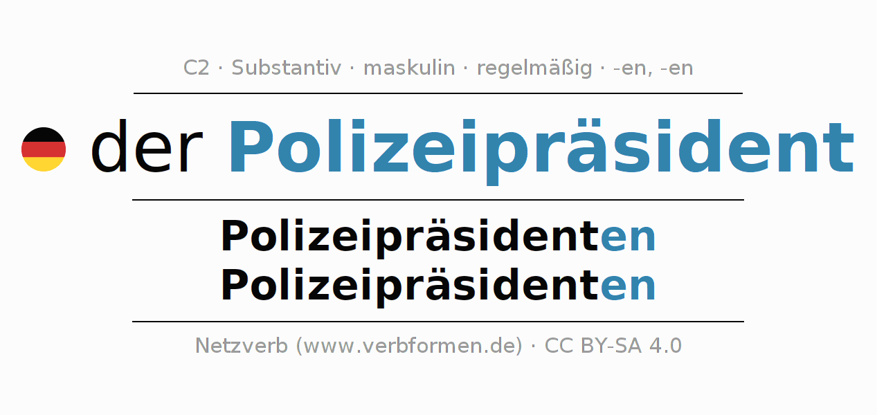 | Akk. | den Polizeipräsidenten | die Polizeipräsidenten |