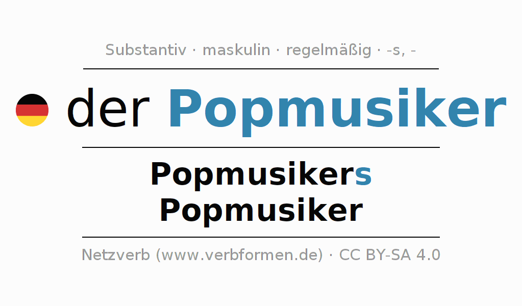 - Singular: der Popmusiker, des Popmusikers, dem Popmusiker, den Popmusiker