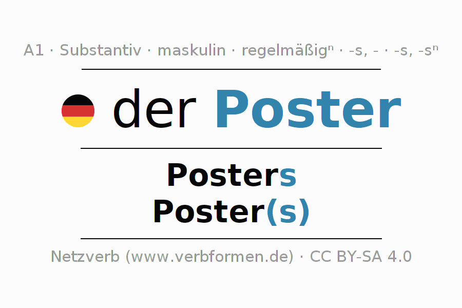 - Singular: der Poster, des Posters, dem Poster, den Poster