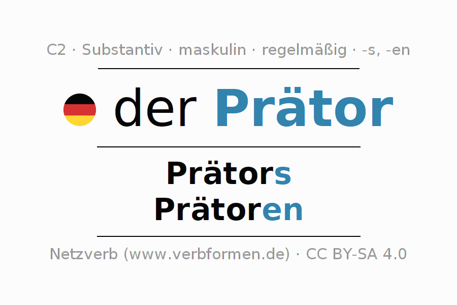 - Plural: die Prätoren, der Prätoren, den Prätoren, die Prätoren