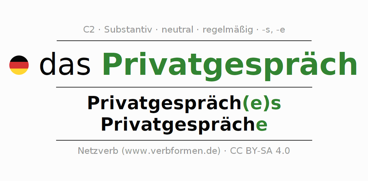 | Dat. | dem Privatgespräch(e) | den Privatgesprächen |