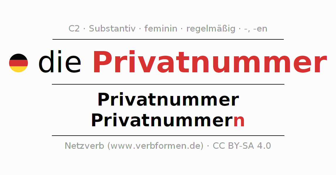 - Singular: die Privatnummer, der Privatnummer, der Privatnummer, die Privatnummer