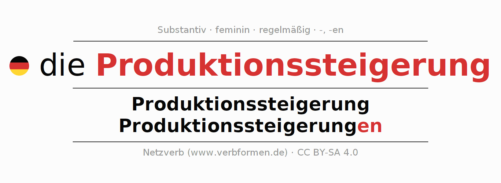 - Singular: die Produktionssteigerung, der Produktionssteigerung, der Produktionssteigerung, die Produktionssteigerung