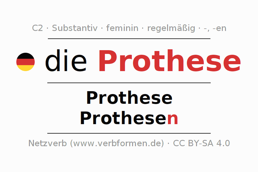 - Plural: die Prothesen, der Prothesen, den Prothesen, die Prothesen