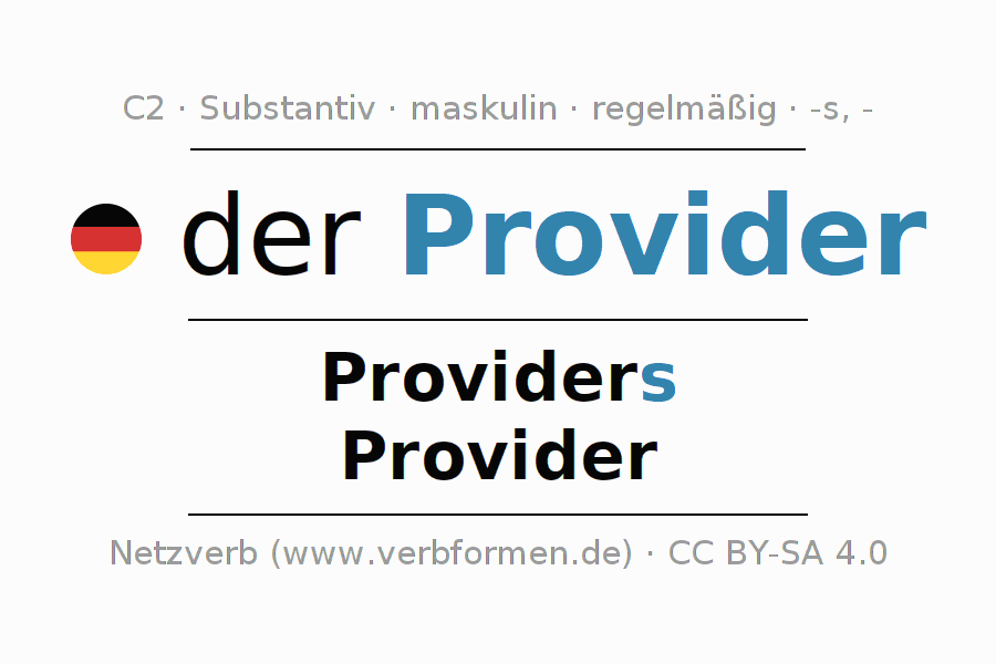 - Singular: der Provider, des Providers, dem Provider, den Provider