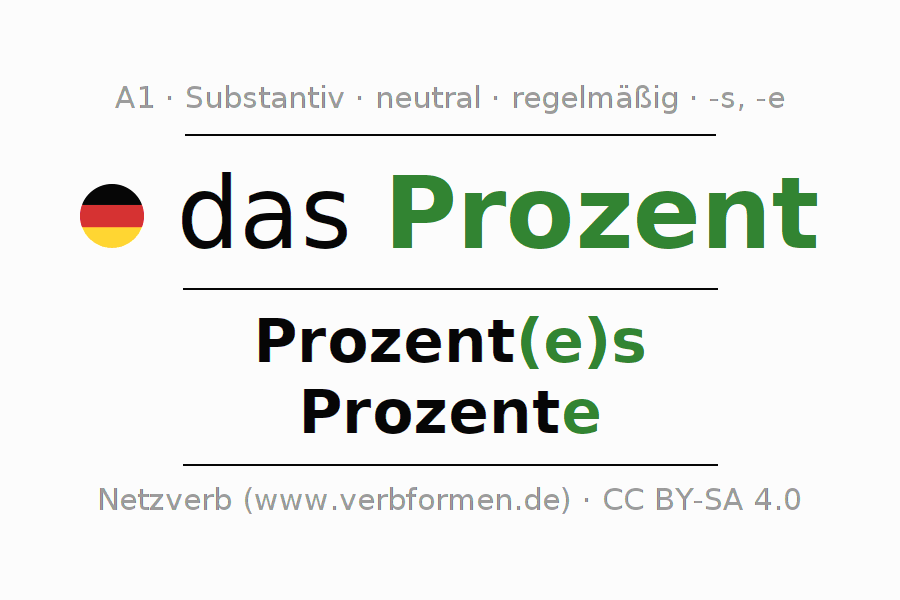 - Singular: das Prozent, des Prozent(e)s, dem Prozent(e), das Prozent